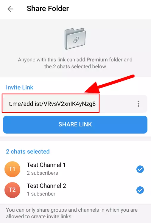 Once you've created a new folder link, Telegram will generate a unique URL for your chat folder. This URL can be shared with your desired audience.